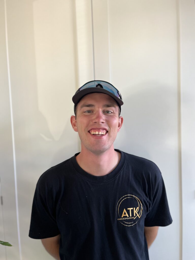 Vinduespudser, fuldtid. Oscar har været hos ATK siden sommeren 2025 og er en super dygtig vinduespudser, og så er han en kanon rar fyr, som altid er klar på en lille snak. Født og opvokset i Aarhus.