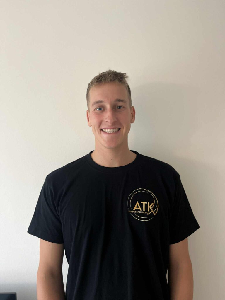 Vinduespudser, studiejob. Benjamin var den anden ansatte i ATK tilbage i starten af 2024, så han kender og følger om nogen vores værdier og kvaliteter – og så er han altid klar på en god snak.